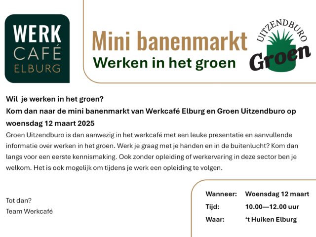 Op zoek naar een baan in het groen? Kom dan naar de mini-banenmarkt op woensdag 12 maart bij het Werkcafé…